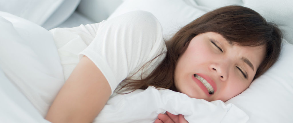 While most of us occasionally grind or clench our teeth, repetitive grinding or clenching (called bruxism) can damage your teeth and jaw. Teeth grinding usually occurs at night and may be caused by stress or anxiety, as well as an abnormal bite, missing tooth, or crooked tooth. It is also a common symptom of sleep apnea.